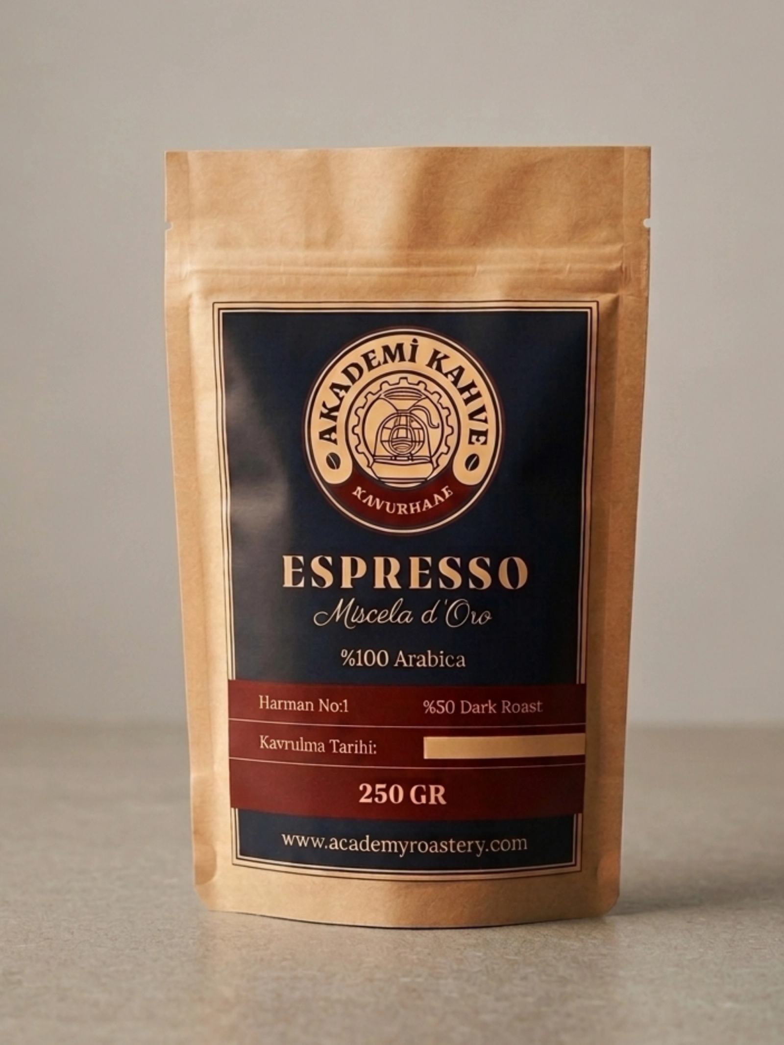 İmza harmanımız — yoğun aromatik profil. Brezilya'nın doğal işlem gövdesi, Etiyopya'nın çiçeksi karmaşıklığı ve Kolombiya'nın dengeli asitliği üç ayrı kavurma profilinde birleştirildi. Full City kavurmada Maillard reaksiyonu tamamlanarak bitter çikolata, karamel ve vişne notları bir arada.